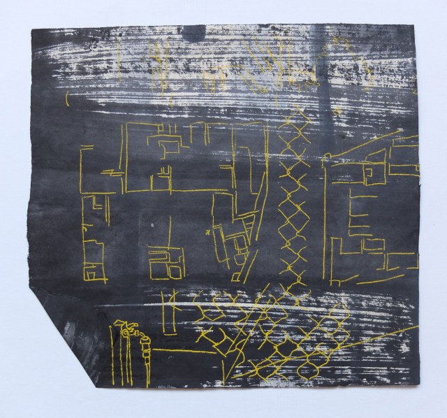 SofiA : Sensible aux friches industrielles, aux chevauchements métalliques, je réinterprète la ville en mouvement ; la ville qui apparaît, disparaît, qui se construit et se déconstruit. Au travers de mes balades et de mes voyages, je repère, croque, photographie le mouvement des populations, la vibration des machines, les murs décrépis tels des cicatrices urbaines. Se forme alors un répertoire d’images qui servira de matière première pour mes compositions picturales.