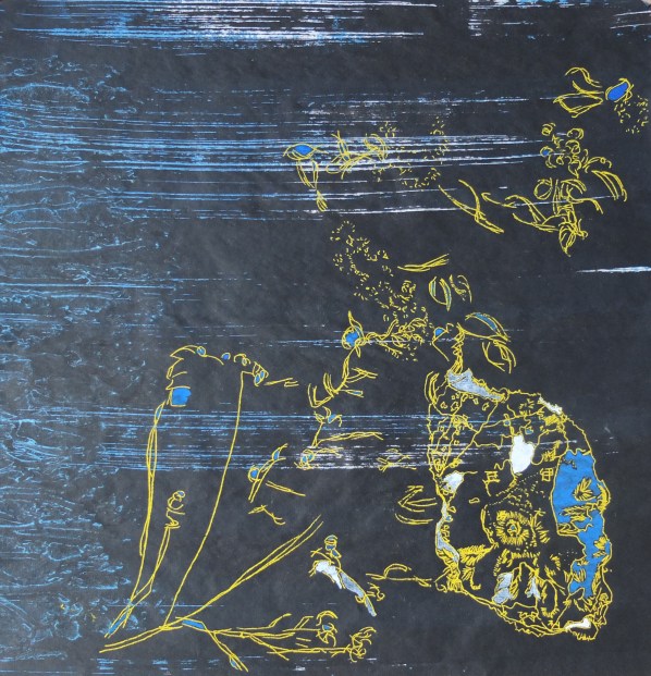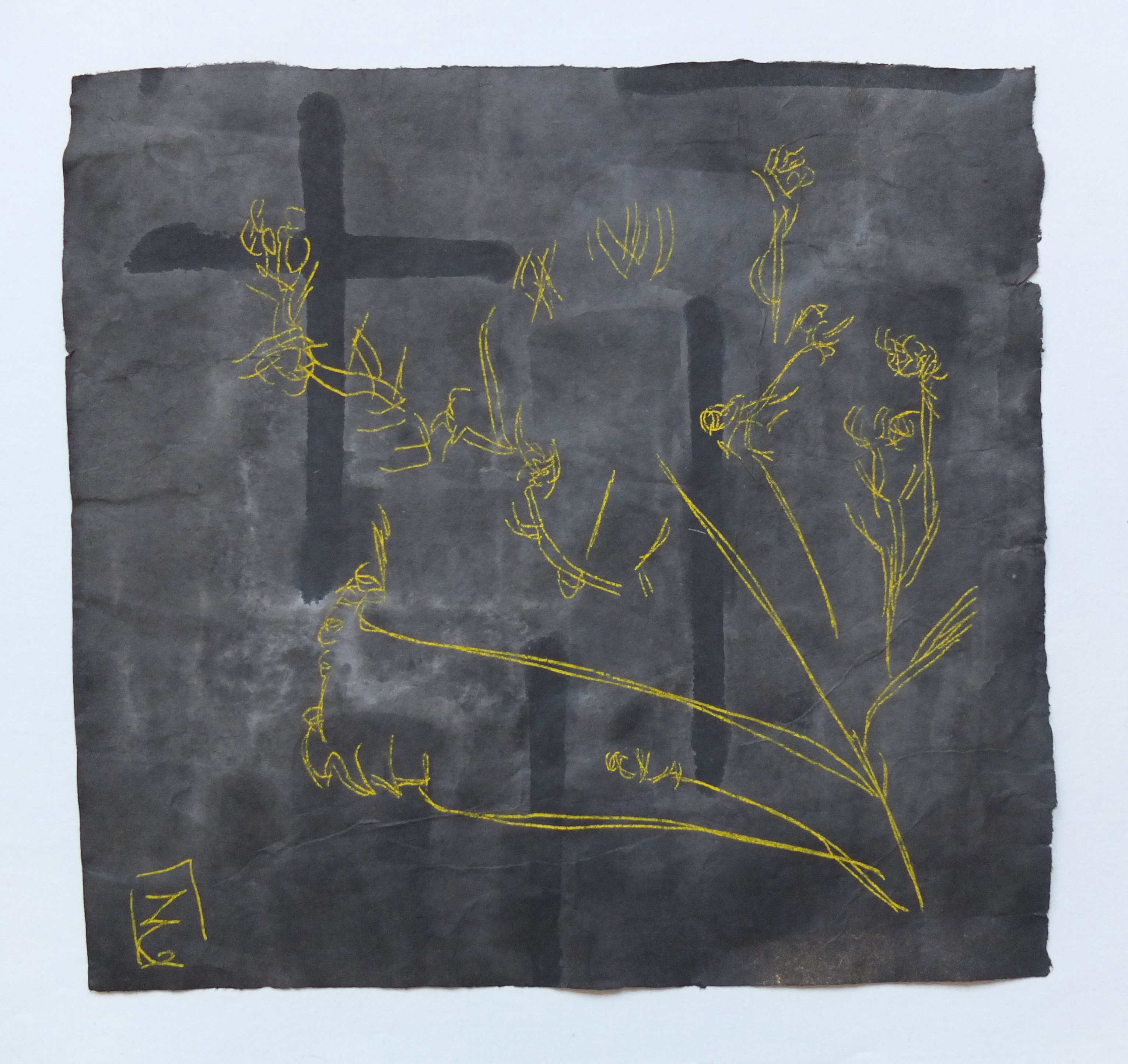 SofiA : Mes dessins se chevauchent sur la toile, s’entrelacent, se superposent. J’utilise des pastels pour poser un trait affirmatif assurant la spontanéité des dessins. Mes toiles posées à même le mur assurent le déploiement du geste.