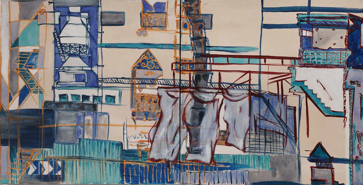 Rues Ste-Marthe & Moinon / 2010 / Huile et pastel sur toile/ 90×150 cm